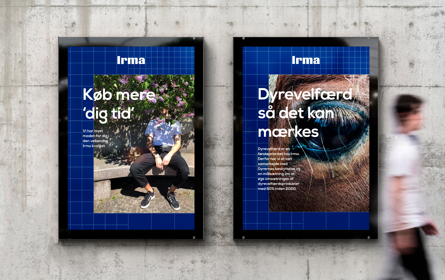 The Irma logo is well-known and loved, why we have kept the logo in its original form. We have redrawn the logo and adjusted the primary colour to a fresher shade of blue, in order for it to match the desired positioning and “Irma attitude”.
