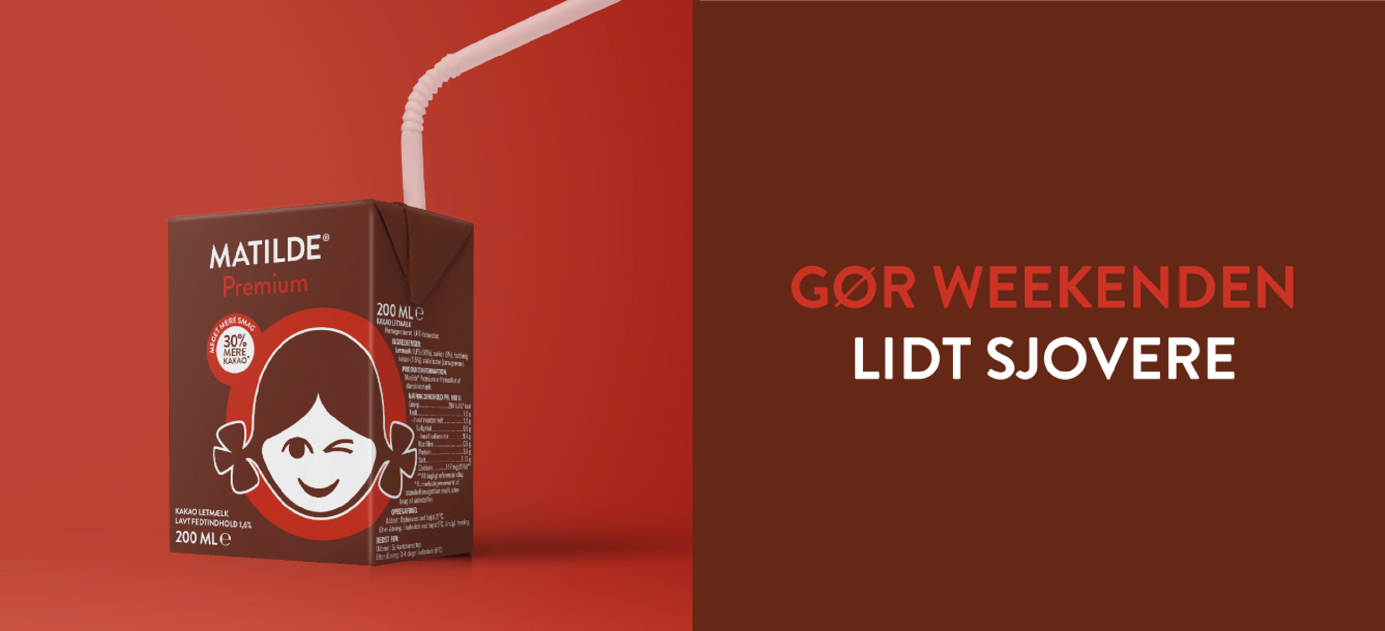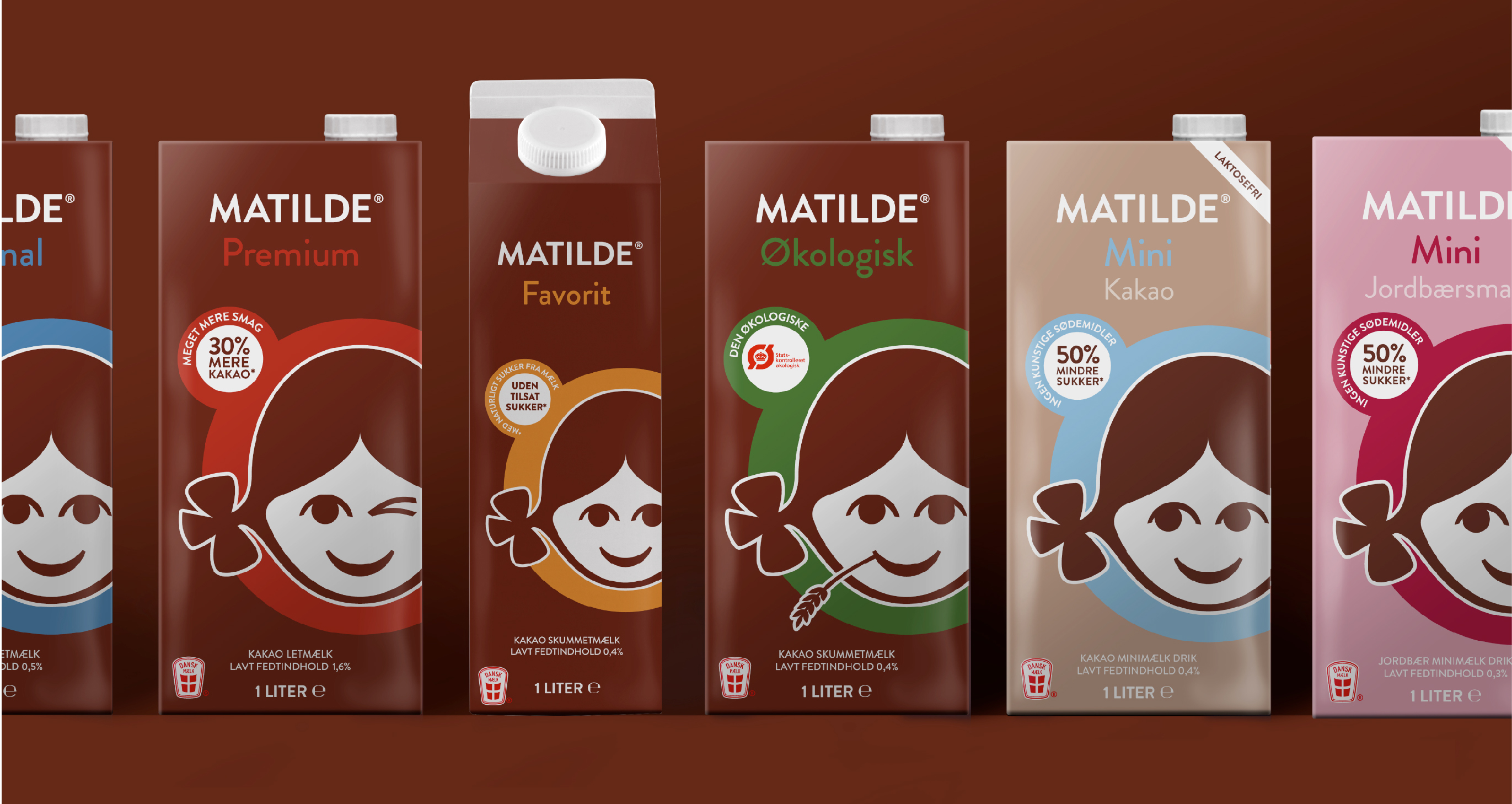 The purpose of MATILDE is to spark moments of joyful togetherness, by bringing the whole family together, and being the well-known “cosiness-maker”. This meant that the design had to be passionate, positive, playful, friendly, and fun. This is achieved by enhancing the existing iconic visual symbol (the MATILDE-girl illustration) to the focal design element of the packaging. The MATILDE-girl is equal to the brand Dna and the symbol of chocolate milk in Denmark – no other illustration would tell that any story better. She is furthermore personified through different occasion-driven visual expressions, which together with a coloured circle.