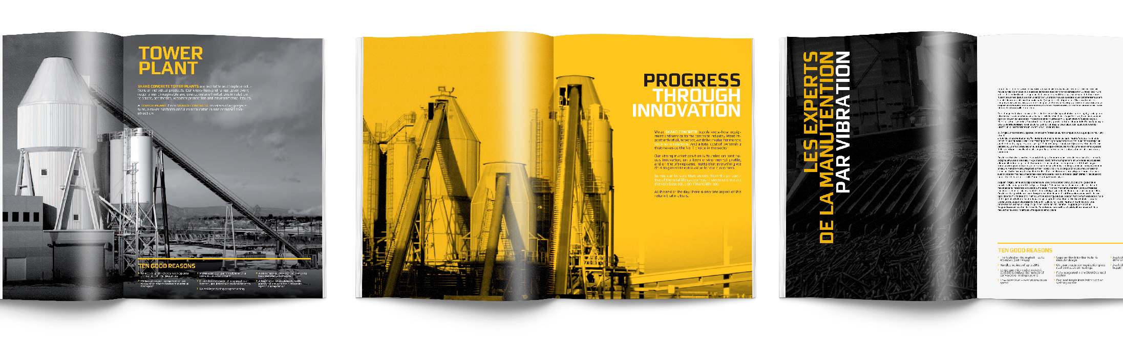 The story is about a new and united SKAKO, the 3 divisions; LIFT, CONCRETE and VIBRATION, and all the different product brands that SKAKO produces as the most efficient and reliable supplier in its industry. When looking for conceptual inspiration for the creative development of SKAKO’s new corporate identity, we looked at the strong and heavy concrete industry combined with references from former SKAKO logos.