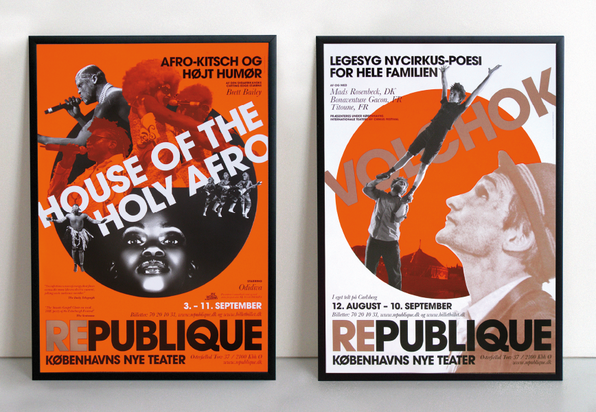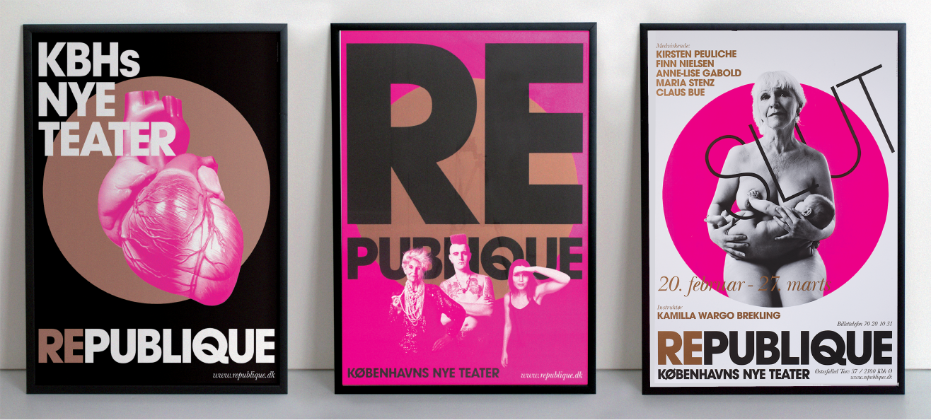 “REPUBLIQUE is an international theatre, which builds a bridge between the classical theatre’s powerful stories and the physical theatre’s innovative, provocative expression”. An important part of the task was to make a strong, simple, visual poster concept which expresses the vision, the individual performances and which at the same time creates attention.